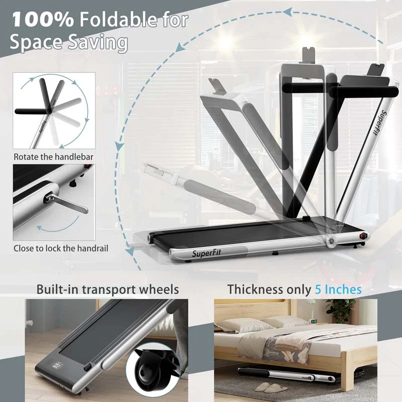 • 2.5HP 2-in-1 Folding Under Desk Treadmill with Speaker APP Remote Control, Portable Walking Jogging Machine for Home Gym Office