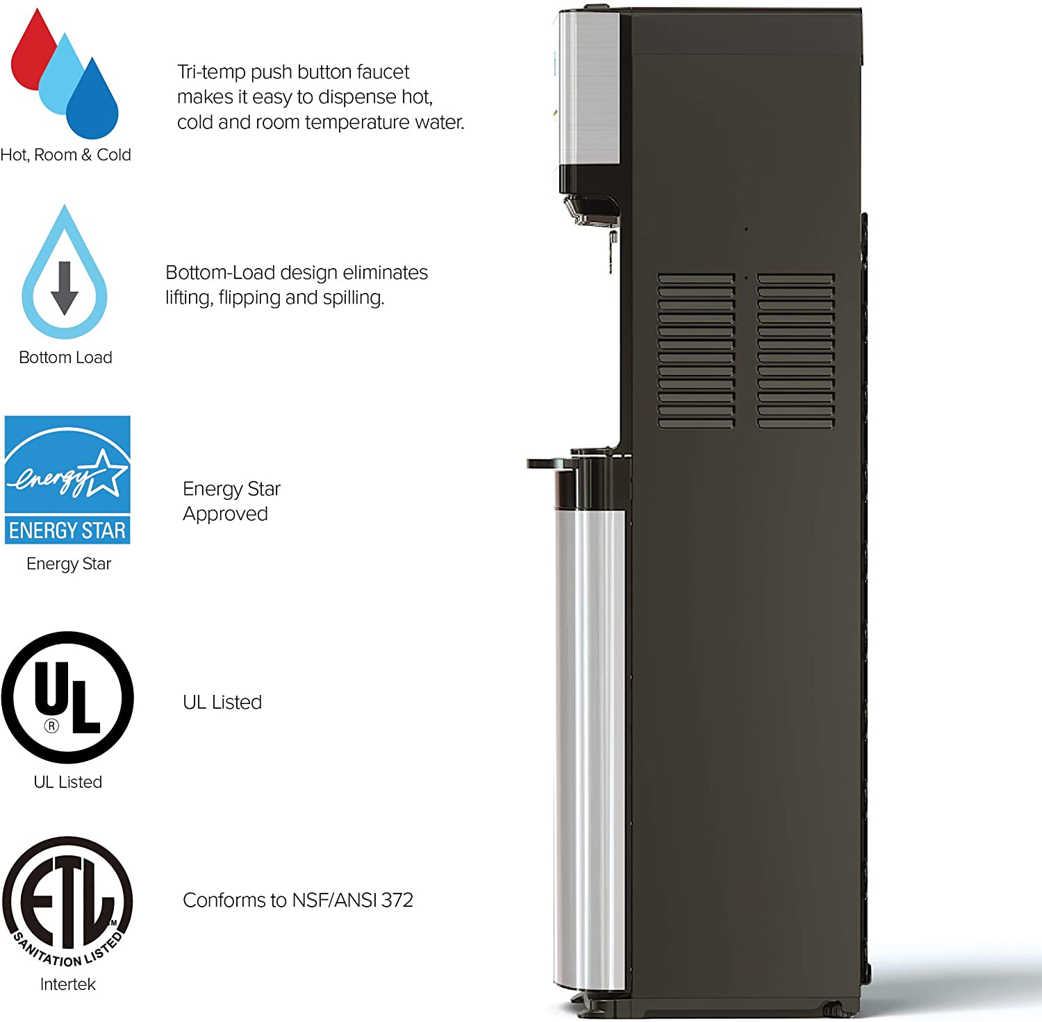 • Brio Self Cleaning Bottom Loading Water Cooler Water Dispenser 3 Temperature Settings